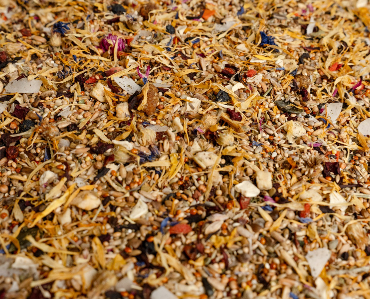 Naše směsi jsou vyráběné v ČR z více než 40 druhů kvalitních ingrediencí, bez pesticidů a chemie, přesně podle potřeb všech papoušků. Pestré, přírodní, bezpečné a chutné – tak, abyste měli jistotu, že své korelce dáváte jen to nejlepší.
