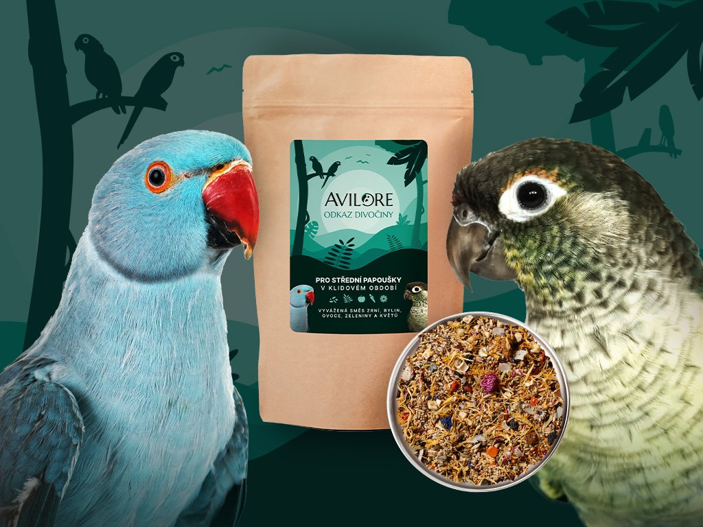 AVILORE – ODKAZ DIVOČINY je krmivo pro malé a střední papoušky: alexandr, agapornis, papoušek senegalský, pyrura, mníšek, korela(mimo jedince se sklony k obezitě), amazónek, aratinga, rosela,…