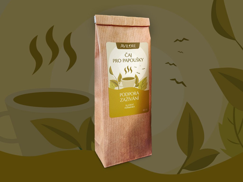 Bylinný čaj pro papoušky, který podporuje správné trávení, zdraví dýchacích cest a celkové zklidnění organismu.
